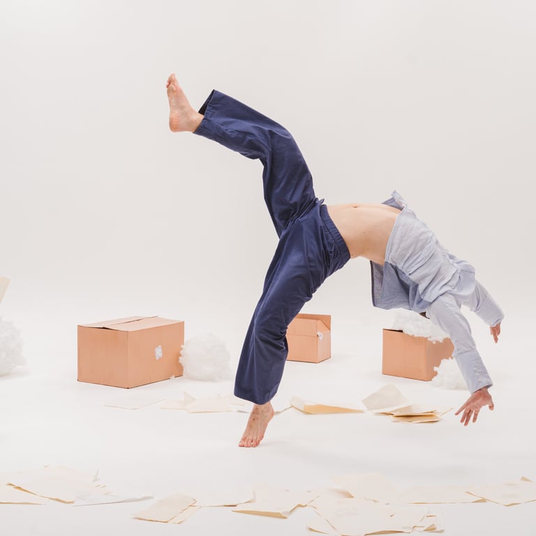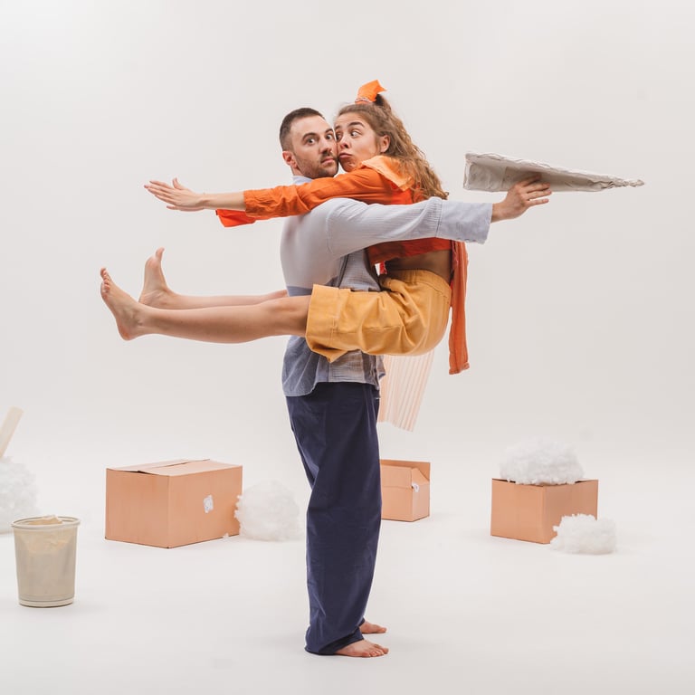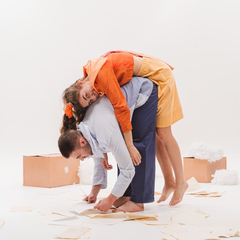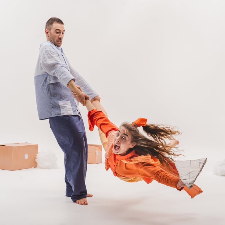 Una obra de danza y clown sobre el juego en su estado máxima pureza y sobre el adulto que ha olvidado que alguna vez atrás también jugó.